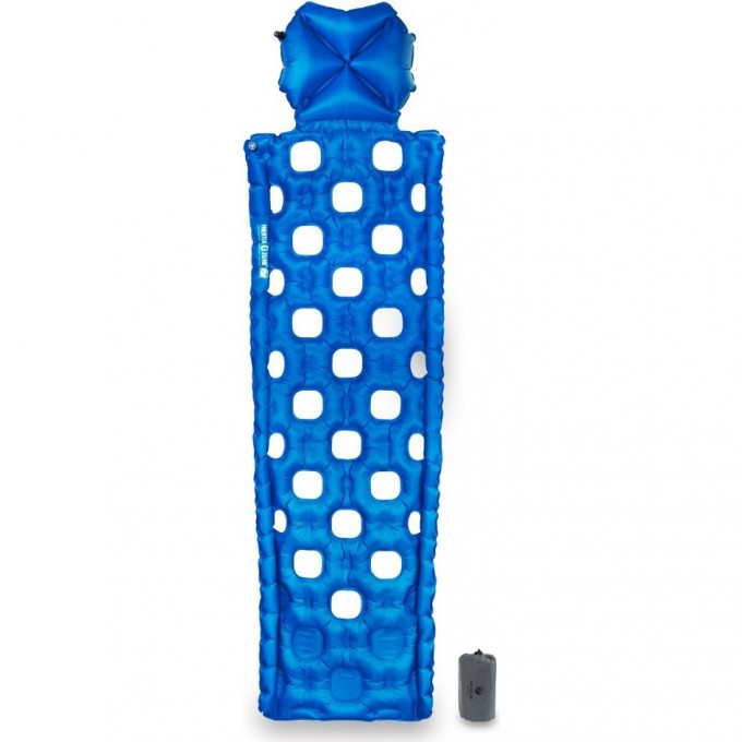 Коврик с технологией «loft pocket» (сохранение тепла и улучшенная воздухопроницаемость за счет пустот и сварных швов). C интегрированной подушкой 10 см. Складывается до размера алюминиевой банки 360 мл. Технология «body mapping» (комфорт за счет учета ключевых точек давления тела на коврик). Для использования внутри и снаружи спального мешка.